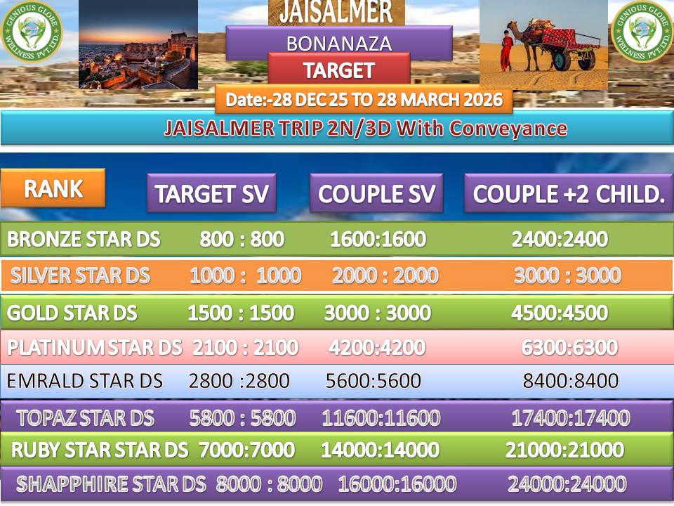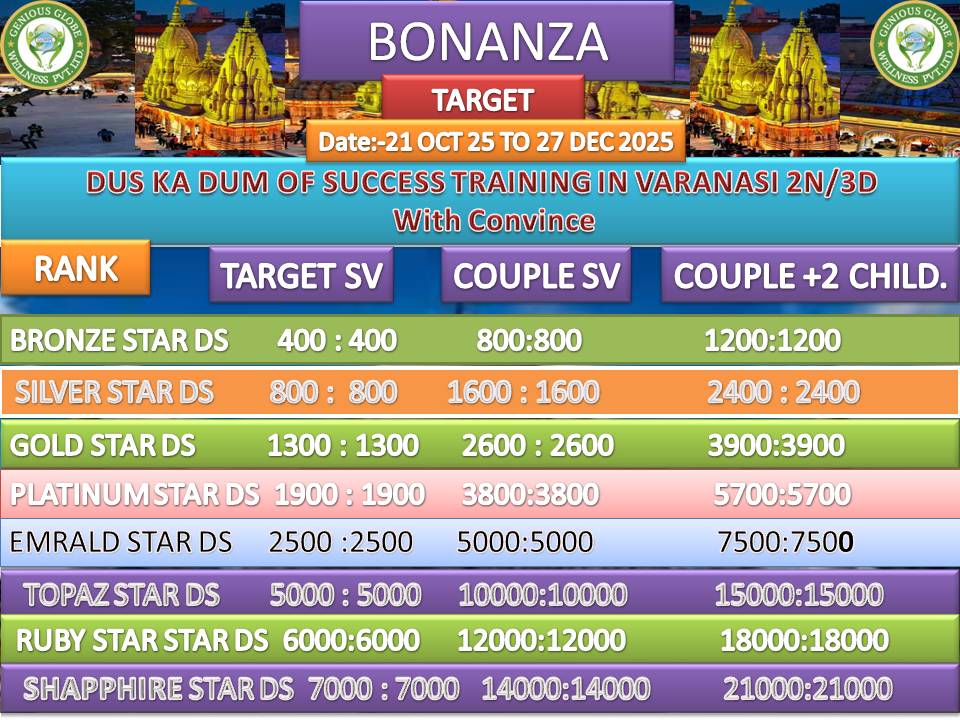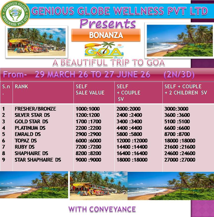 As you know that the health sector is a billion dollar industry but health and wellness is a trillion dollar industry, therefore we have started Genious Globe Wellness pvt ltd with a vision of a healthy India & wealthy India.